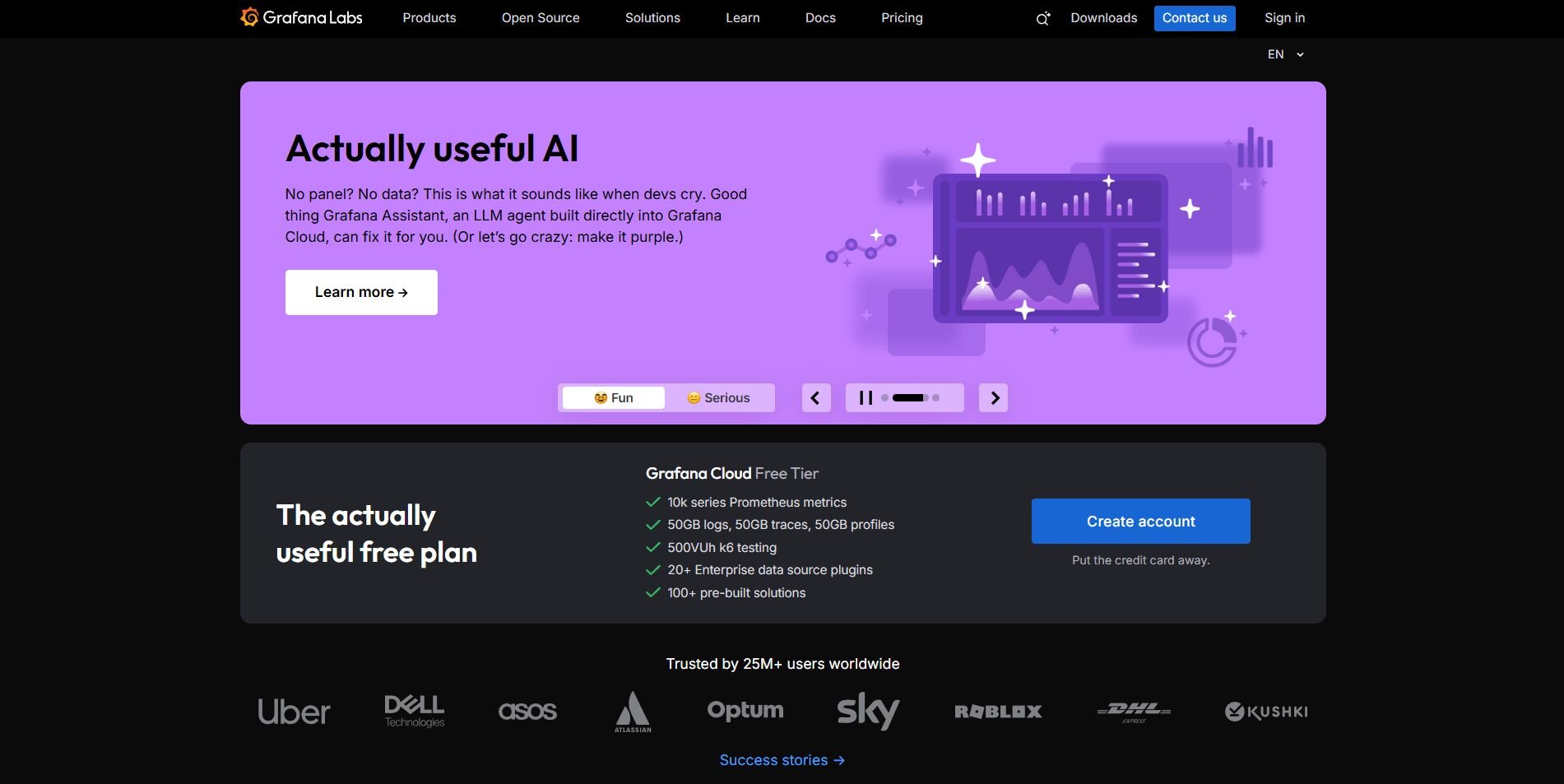 • What it does: Grafana is an open-source platform for visualizing and monitoring data from servers, databases, and cloud applications. It’s often used for infrastructure metrics, uptime, and real-time analytics.