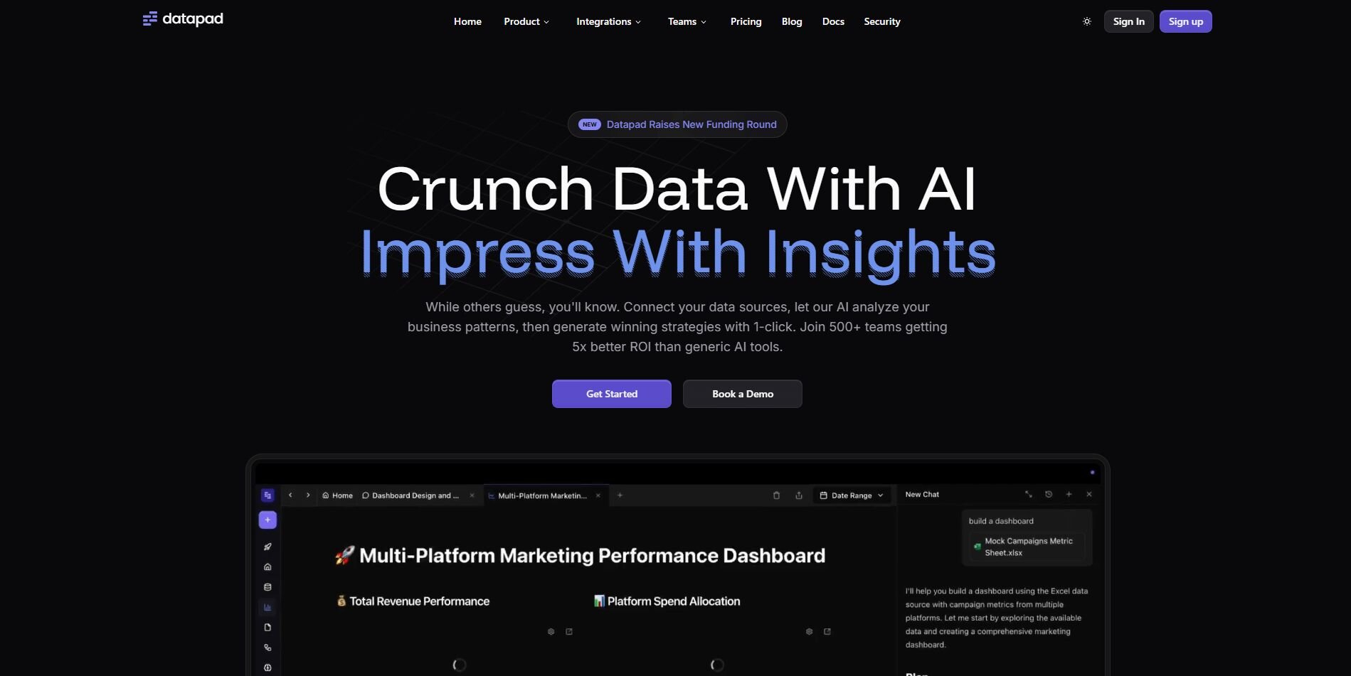 • What it does: Datapad is a lightweight dashboard app designed for mobile teams. It pulls data from tools like Google Analytics, Shopify, and Facebook Ads and displays key metrics in a mobile-friendly format.