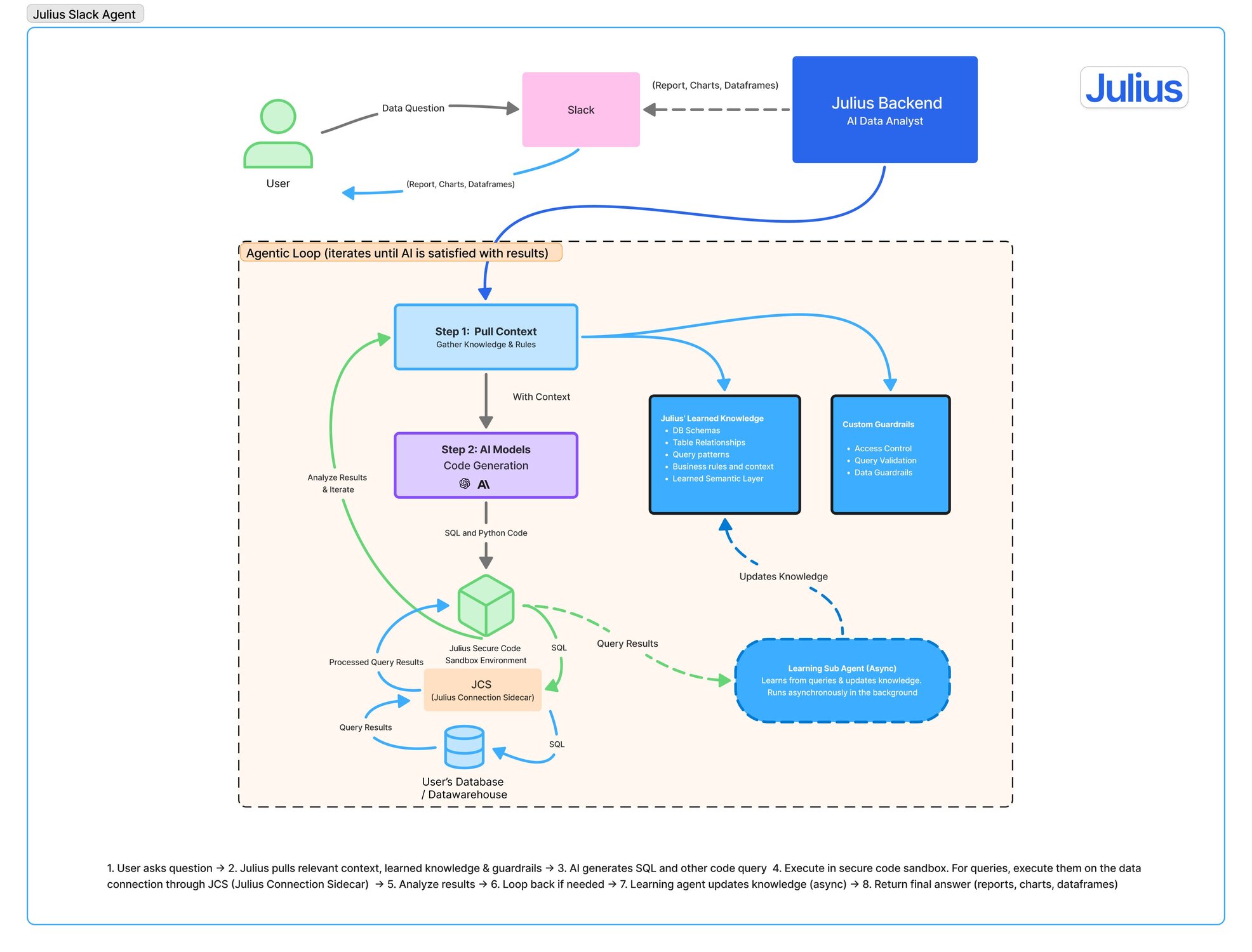 Recently, we shipped Julius to Slack. A real agent that queries databases, generates visualizations, and handles multi-step analysis directly in your workspace.